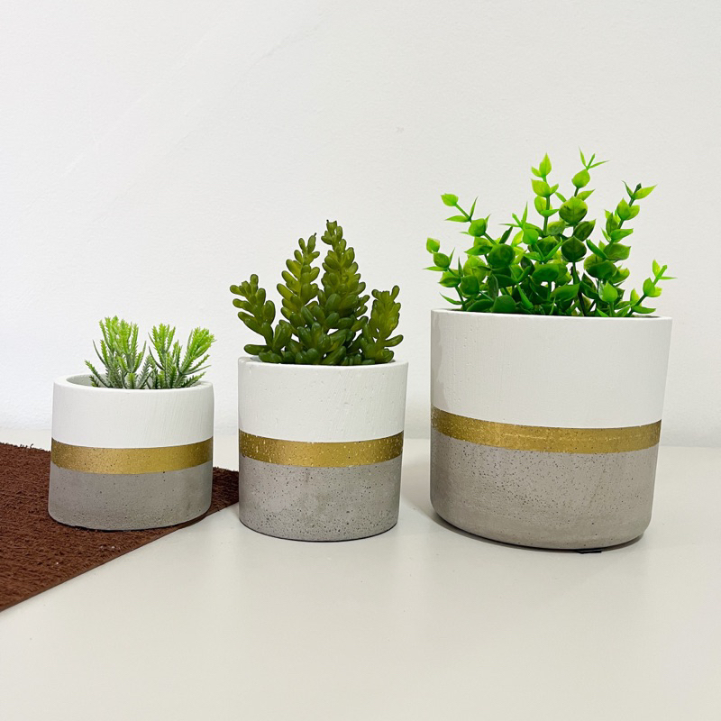 Kit com 3 Vasos Artesanais de Cimento P, M e G para Decoração