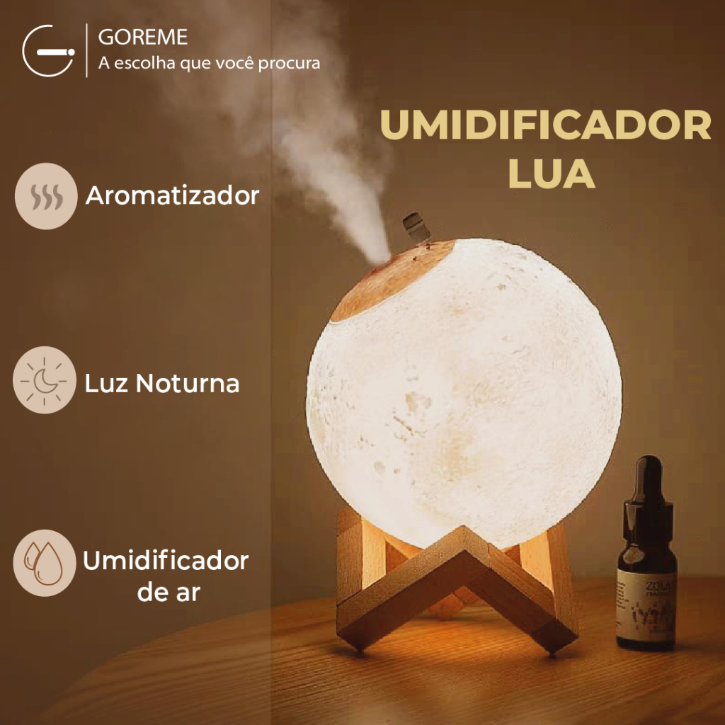 Luminária Lua Cheia 3D Abajur LED com Alto Relevo e Base para Decoração sem Fio com Suporte | Disponível em 3 Cores