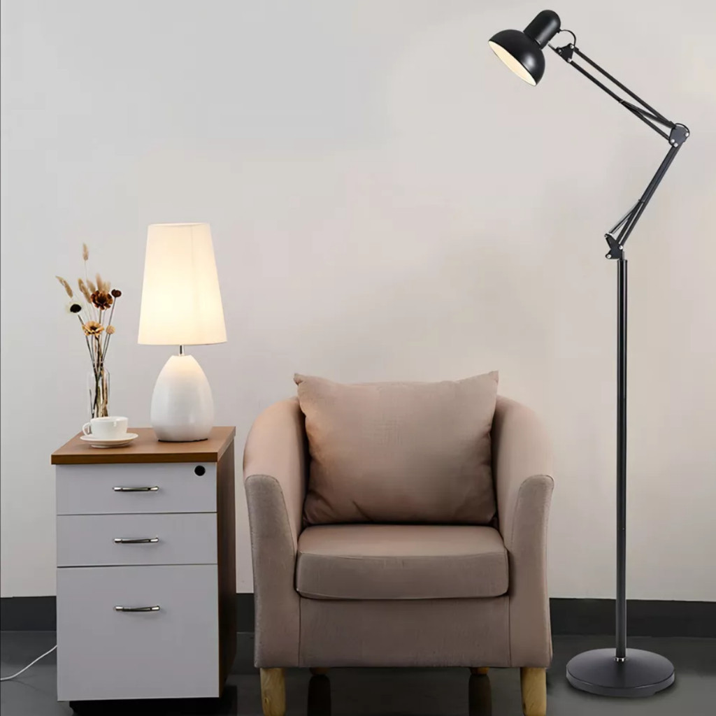 Luminária 1,9m Articulada Chão Pedestal Piso Abajur Lustre PRETA