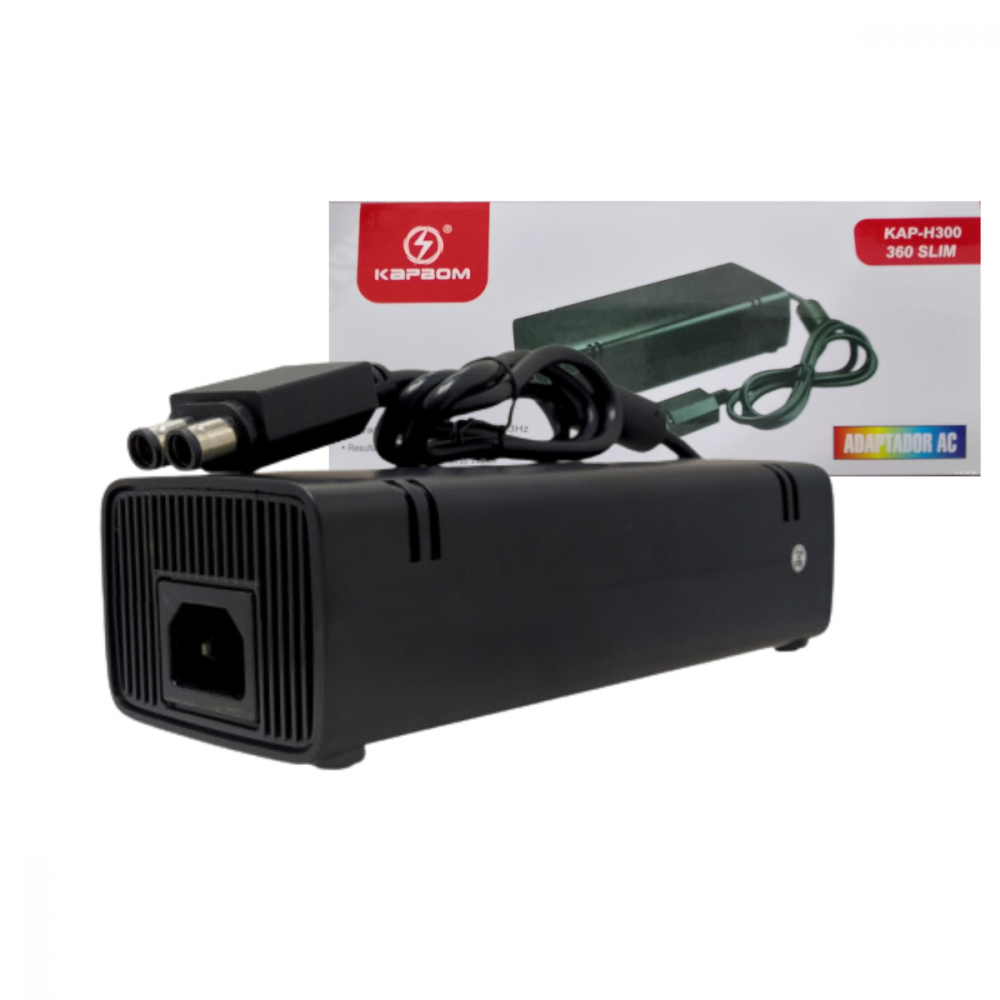 Fonte de Alimentação 2 Pinos Xbox 360 Slim - Kapbom KAP-H300 Bivolt, Alta Qualidade