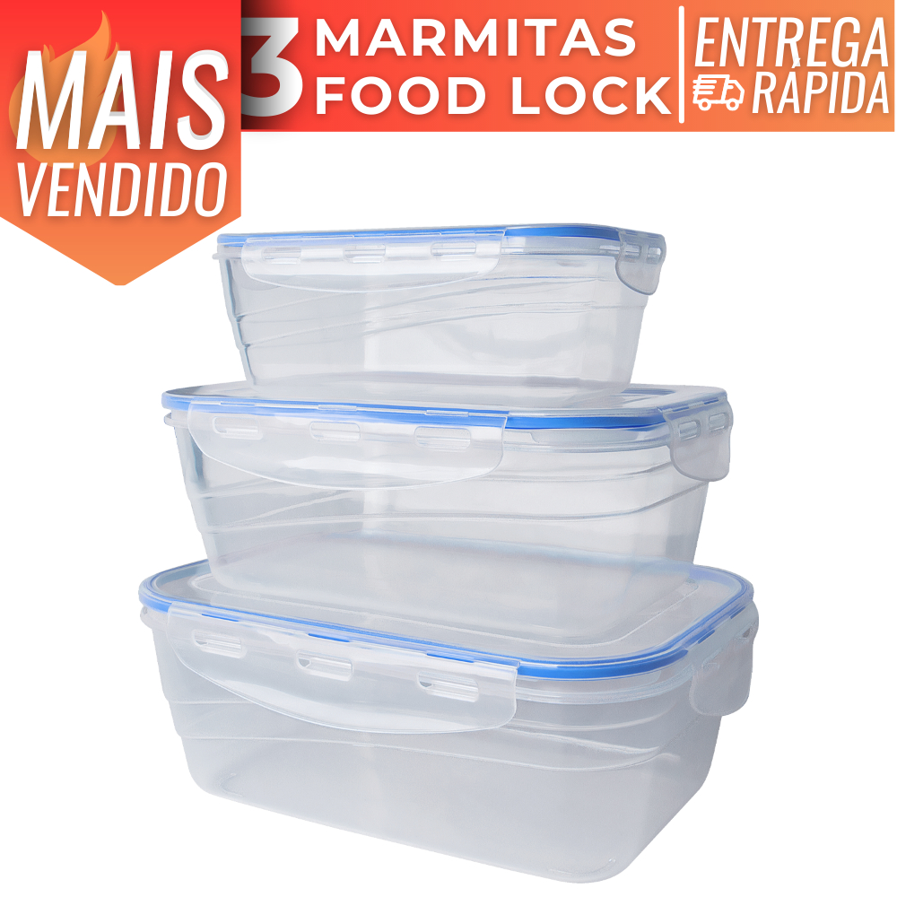 Conjunto com 3 Potes Herméticos de Plástico com Lacre Trava e Alta Vedação de Silicone 500 ML / 1.000 ML / 1.500ML / Resistente BPA Free vai ao Freezer e Micro-ondas - LP HOUSE