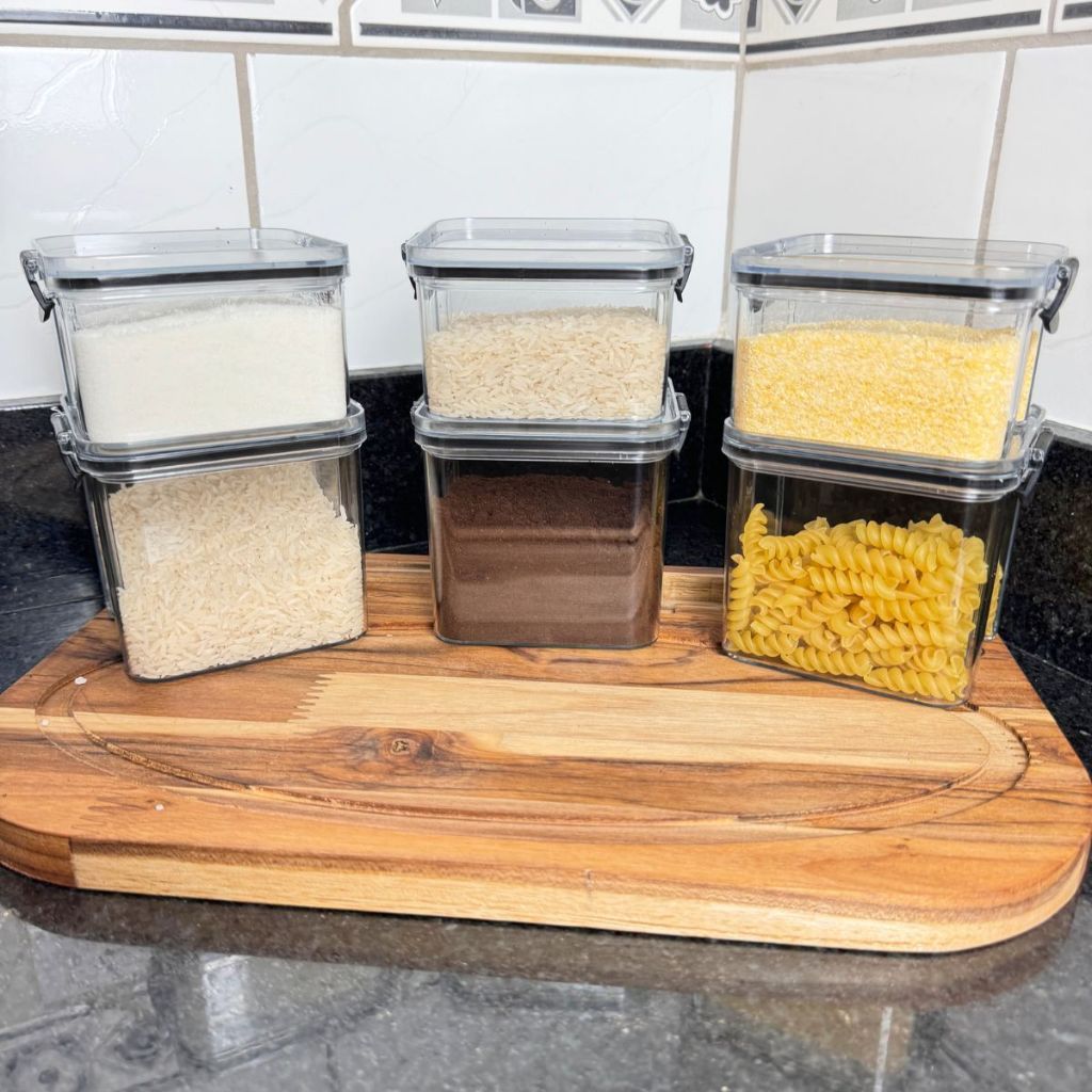 Conjunto de 6 Potes Herméticos em Acrílico Cristal - Organizador para Mantimentos (3 unidades de Organizador Slim de 500 ml e 3 unidades de Organizador Slim de 800 ml)