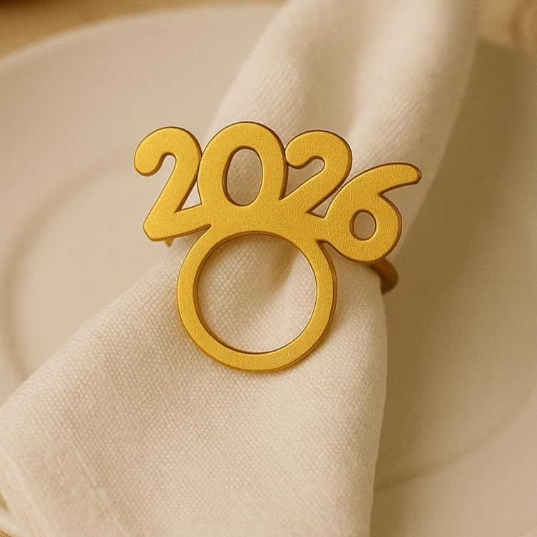Kit 6 / 12 / 24 Anel Porta Guardanapo 2026 – Decoração Mesa Posta Réveillon Ano Novo Festa Jantar