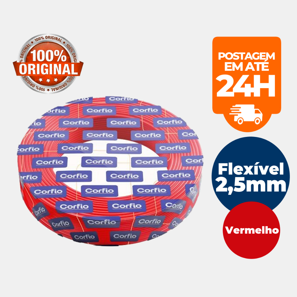 Fio Cabo Elétrico Flexivel Cabinho de Energia Corfio 2,5mm 750V Rolo 100m Vermelho para tomada interruptor