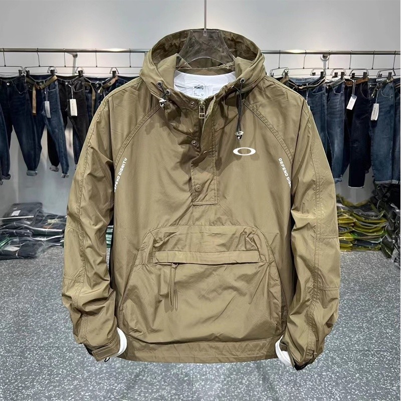 Oakley Casaco Exterior Masculino Com Bolsos Grandes Capuz semi-zippered Pulôver Jaqueta À Prova De Vento Assalto casual top Solto