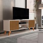 Rack Ripado 2 Portas Pés Estilo Retrô Prateleira central 136cm com Painel para TV 32, 42, 46, 48, 50 Polegadas Astúrias 136cm