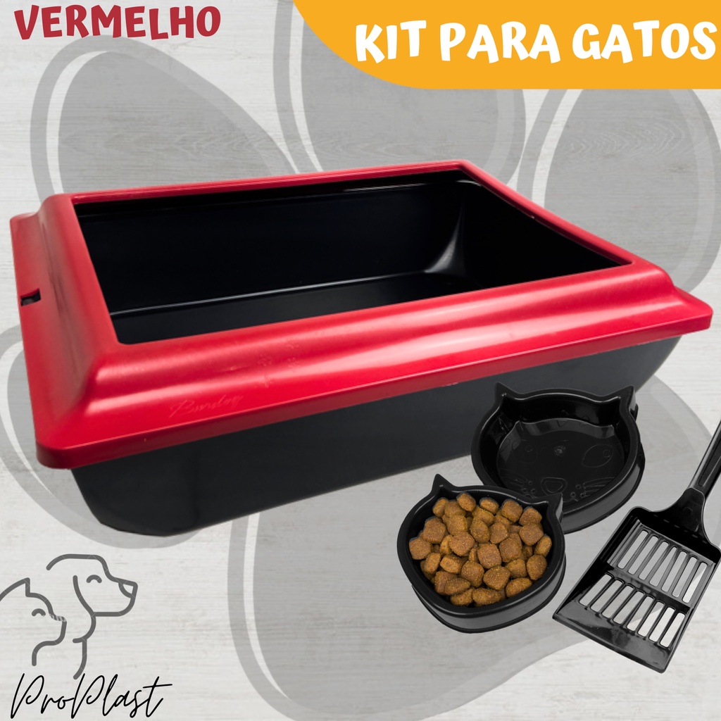 Caixa de Areia para Gato kit com Bandeja Higienica Comedouro Bebedouro Pá e Brinquedo