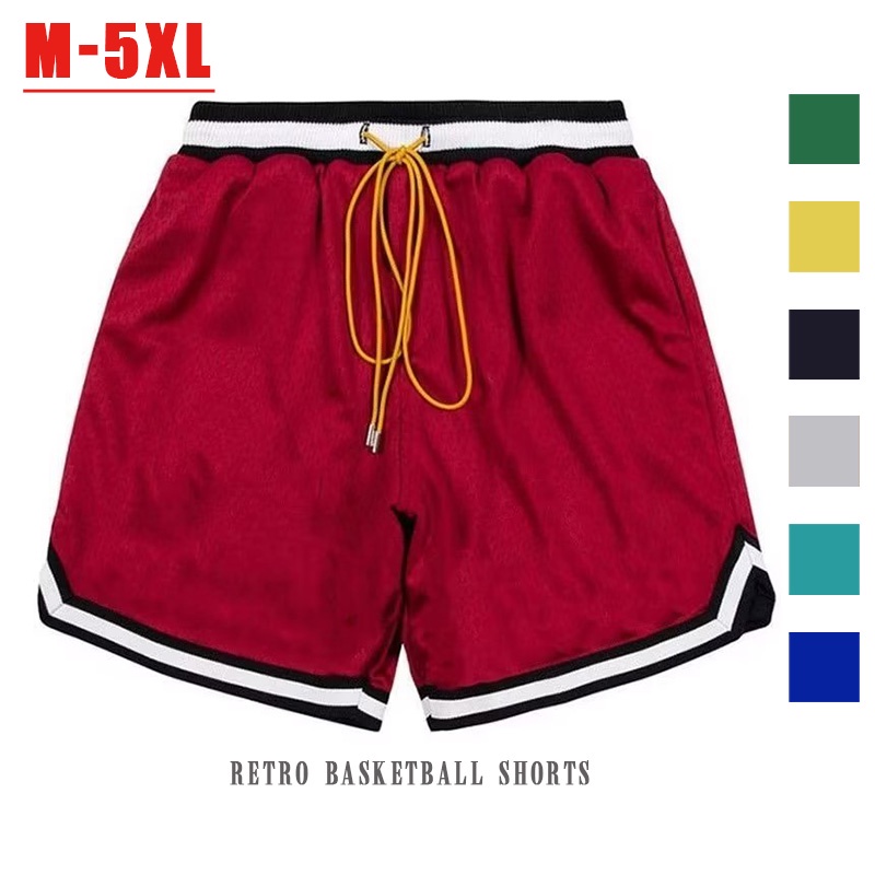 [7 Cores] Tendência Retro Americana Masculina Acima Do Joelho Calções Casuais Esportes De Verão Quick Dry Basquetebol Básico Calças Curtas M-5XL Vermelho Verde Cinza Azul