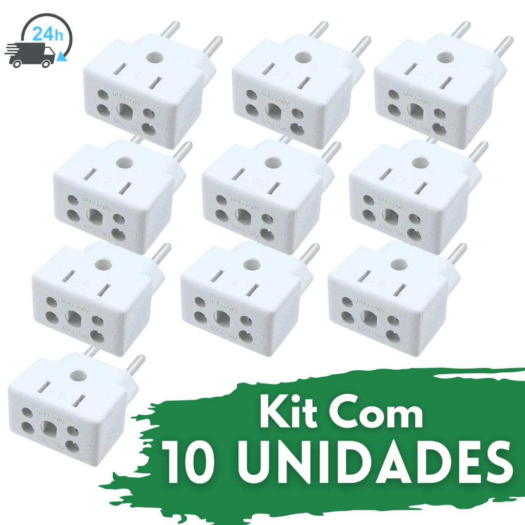 Kit 10 Adaptador De Tomada Benjamin 10A/20A Pino Bob Esponja