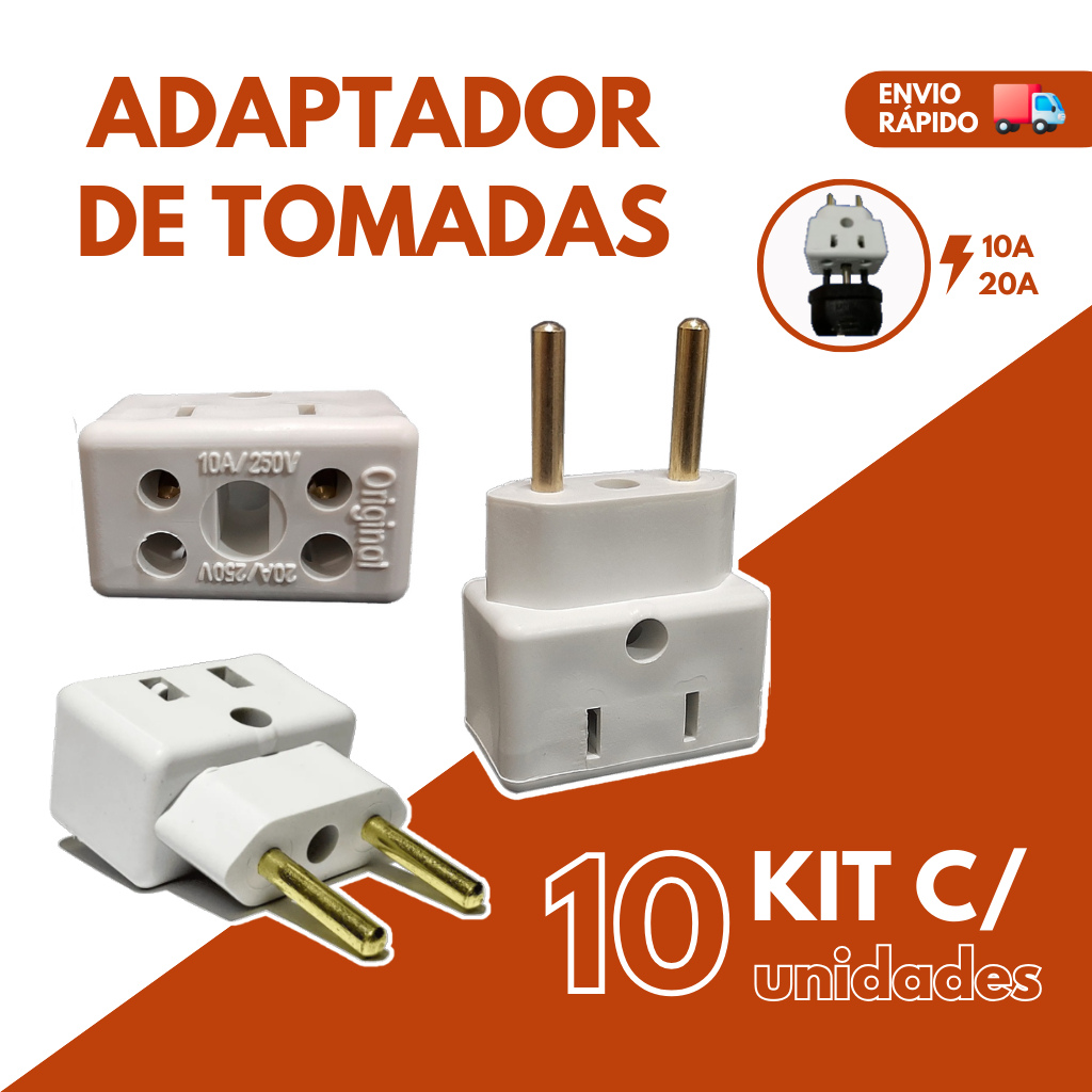 Kit 5 Adaptadores de Tomada Benjamin Aceita Plug Padrão Novo e Antigo 10A e 20A Adaptador BOB Esponja