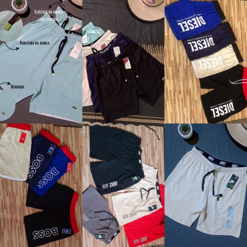 KIT COM 4 OU 3 Bermudas/Shorts Dri fit COM BOLSO em Poliéster com elástico e cordão Liso / Leve / Esportes e Dia a Dia