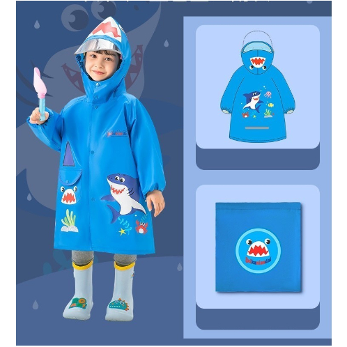 Capa de chuva infantil menino com capuz e bolsos PVC