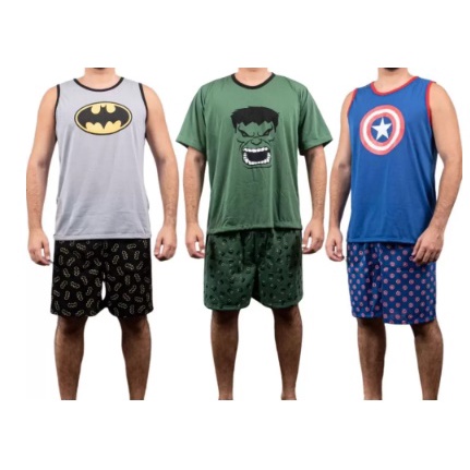 Pijama Masculino Adulto Regata Estampa Super Heróis Curto Verão
