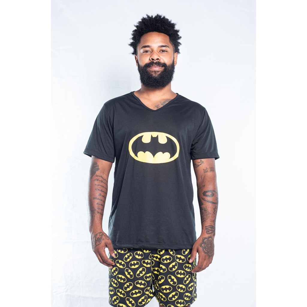 Pijama Curto Masculino Super Herói Batman Verão Adulto