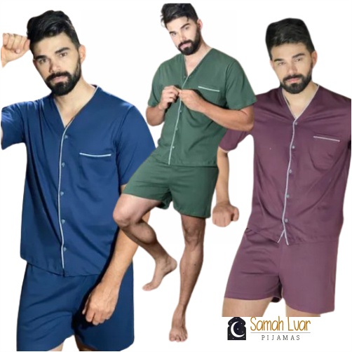 Pijama 4 Estações Masculino Adulto Com Botão Aberto Short Curto Verão Conforto Verde
