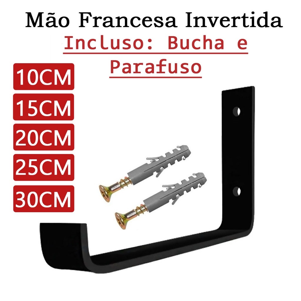 Mão Francesa Suporte Cantoneira Invertido 20 cm Prateleira Aço 1 pç Com Bucha e Parafusos