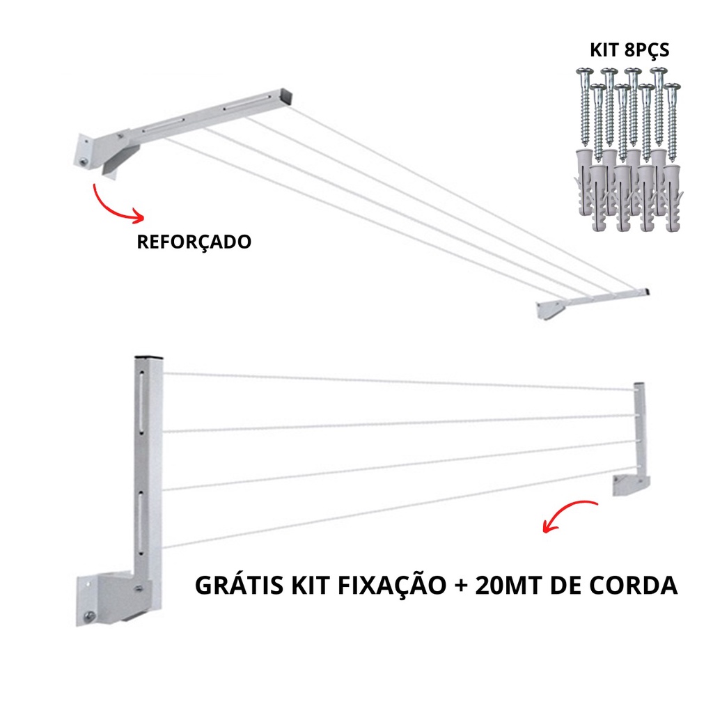 Varal Retrátil + 20 Metros De Corda + Parafusos e Buchas