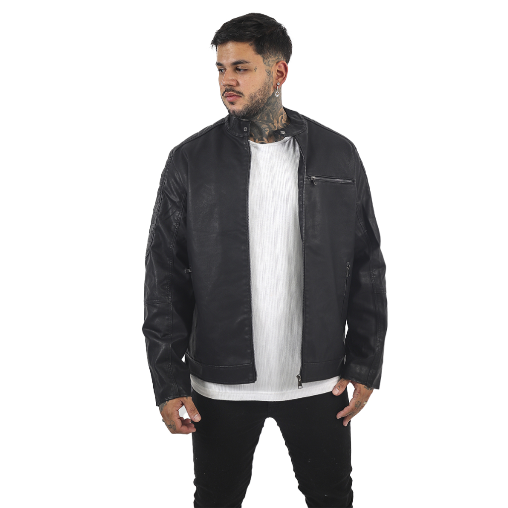 Jaqueta De Couro preto Masculina Slim Resistente Bobojaco masculina impermeável