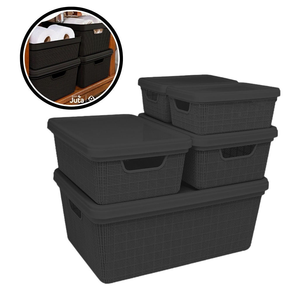 Kit 5 Caixa Organizadora com Tampa Cesto Grande de Plástico 2 Litros 4,5 Litros 17 Litros