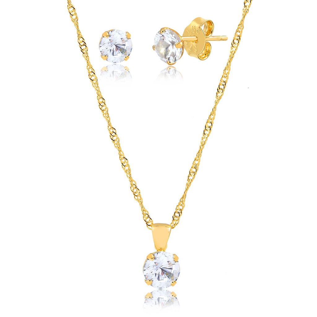 Conjunto Colar Com Pingente E Brinco Ponto De Luz Com Zirconia Banhado Em Ouro 18k Ótima Sugestão De Presente Fim De Ano E Amigo Oculto