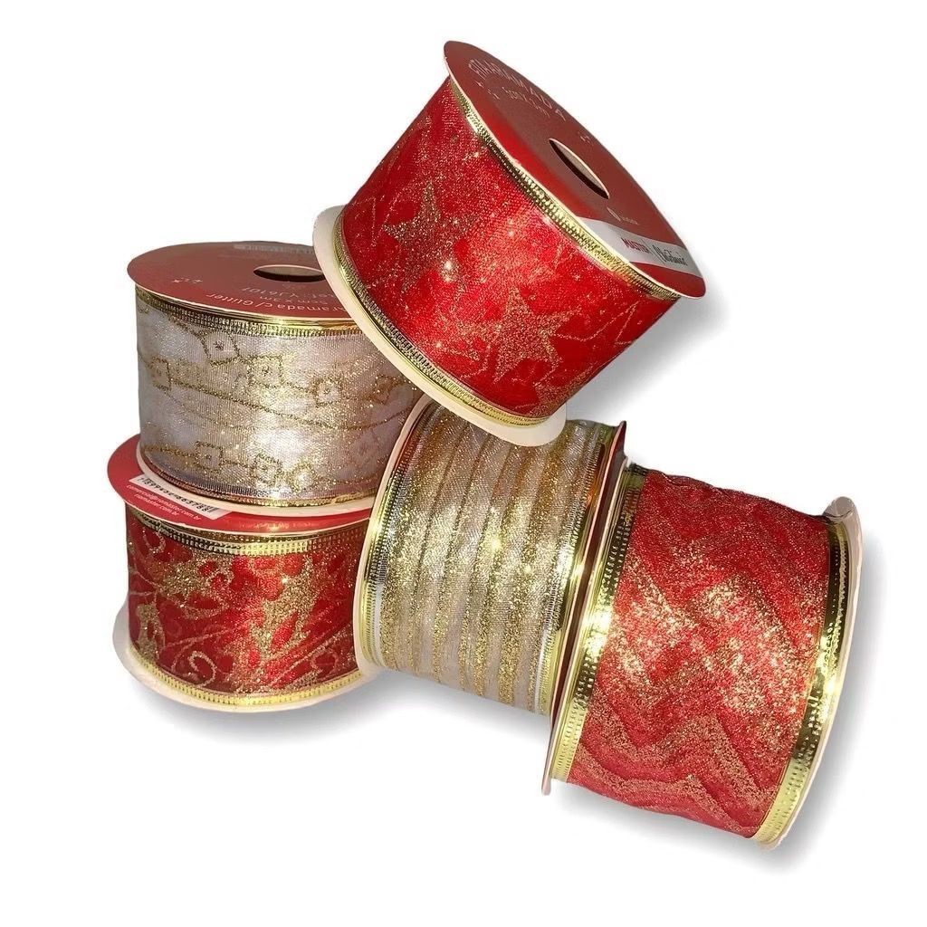 Conjunto 3 Fitas Aramadas Com Glitter 3cmX3M Para Laços Decoração Natalinas Decoração Árvores de Natal Festas Fim de Ano