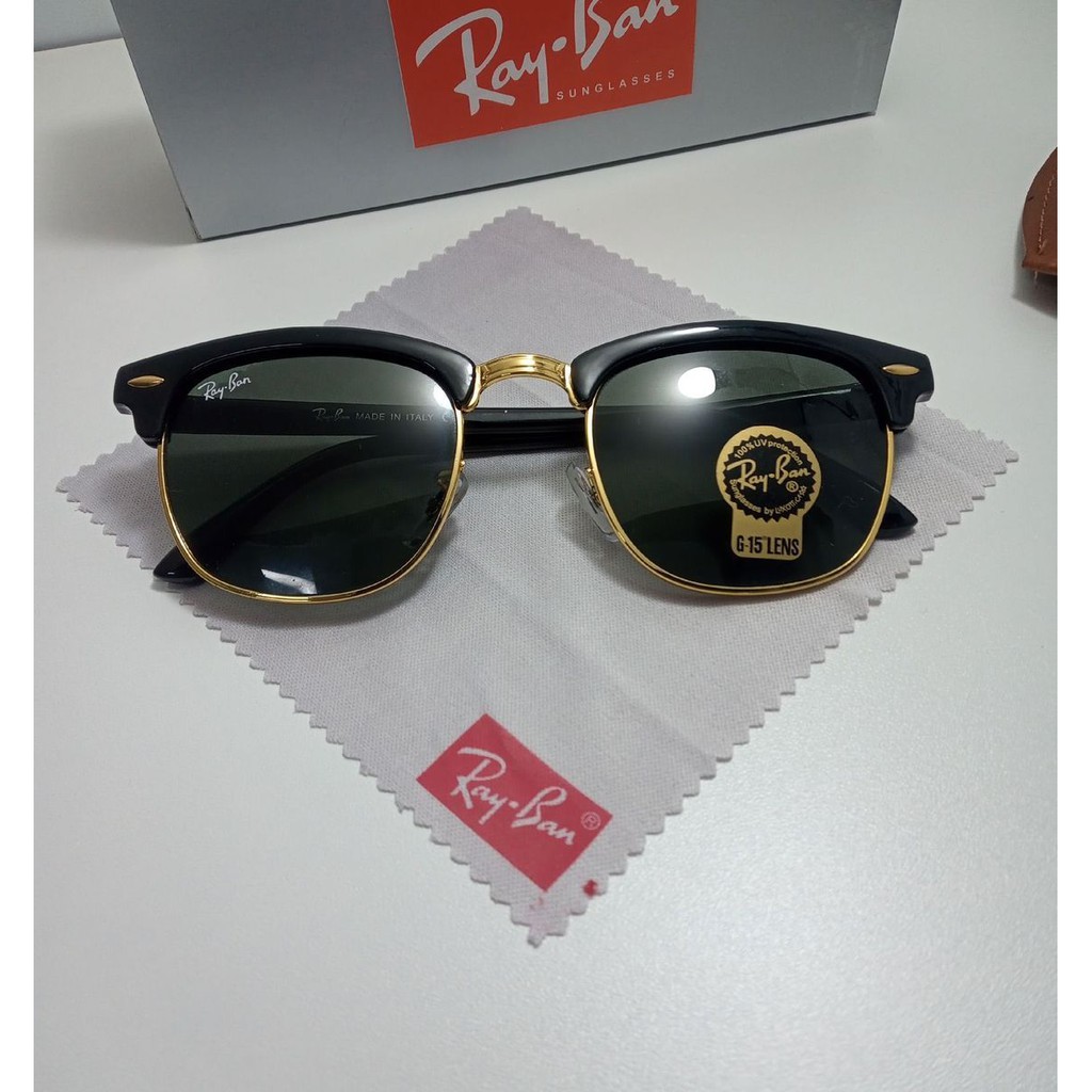 Óculos De Sol Clubmaster preto Liso com detalhes dourado Lentes Cristal Uv400