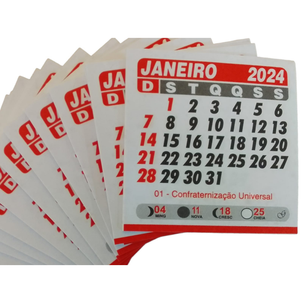 Mini Calendário 2024 Bloquinho para ímã de geladeira 100 unidades - Pronta Entrega - Envio Imediato - Mais Barato