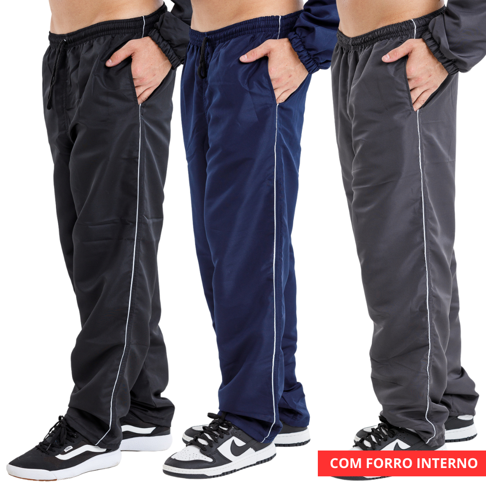 Kit 3 Calça Tactel Masculina Todas com 03 bolsos Fundos e Costura Reforçada