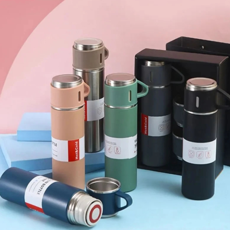 Kit Garrafa Térmica Vacuum Flask Set 500ml Xícaras/Garrafa Térmica de Aço INOX 500ML com Tampa / para Café e Chá