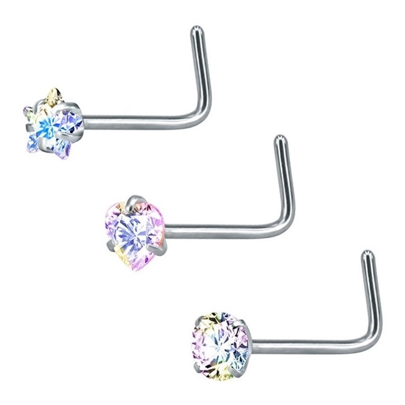 1 Pc Cristal Colorido De Aço Inoxidável Piercings De Nariz Estrela Redonda Do Coração Cz Nose Stud L Forma Nostril Piercing 20G