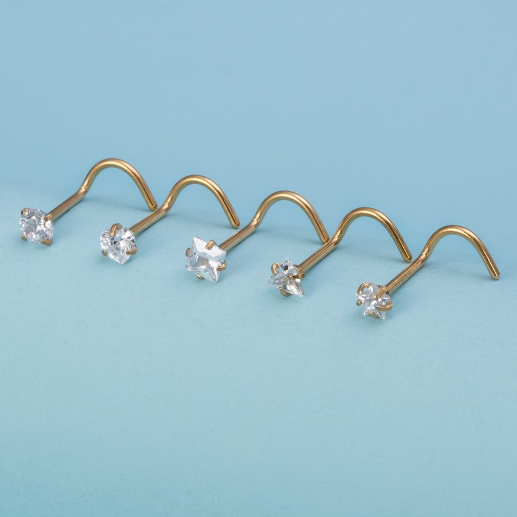 Piercing Nostril de Nariz Zircônia 5A de 3mm Estrela/Redondo/Quadrado/Coração em Aço Inoxidável Cirúrgico Dourado