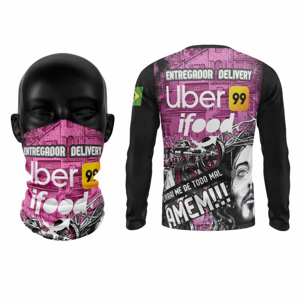 Kit camiseta manga longa mais bandana uber entregador ifood 99 motoboy delivery livrai de todo mal