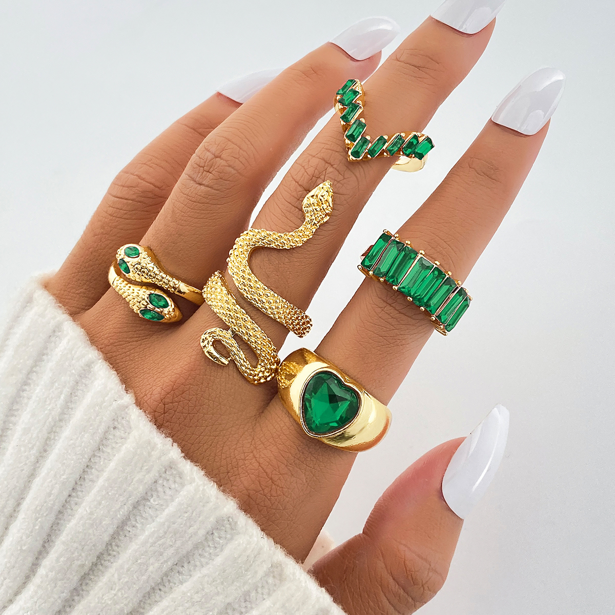 Conjunto de 5 peças Novo Estilo Retro Fashion Metal Snake Ring com Diamantes Várias Cores Disponíveis