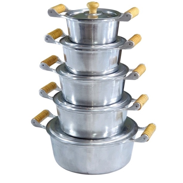 Jogo de Panelas Grossas 5 peças em alumínio batido Fundido Polidas