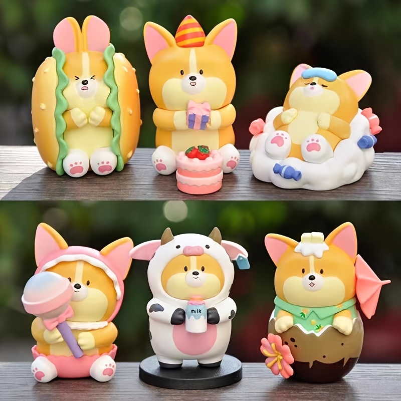 6pcs a Vida Diária Da Foodie Corgi Figura Uma Série Fofa E Adorável De Figuras De Vacas Em Forma De Hambúrguer Brinquedos De Pelúcia