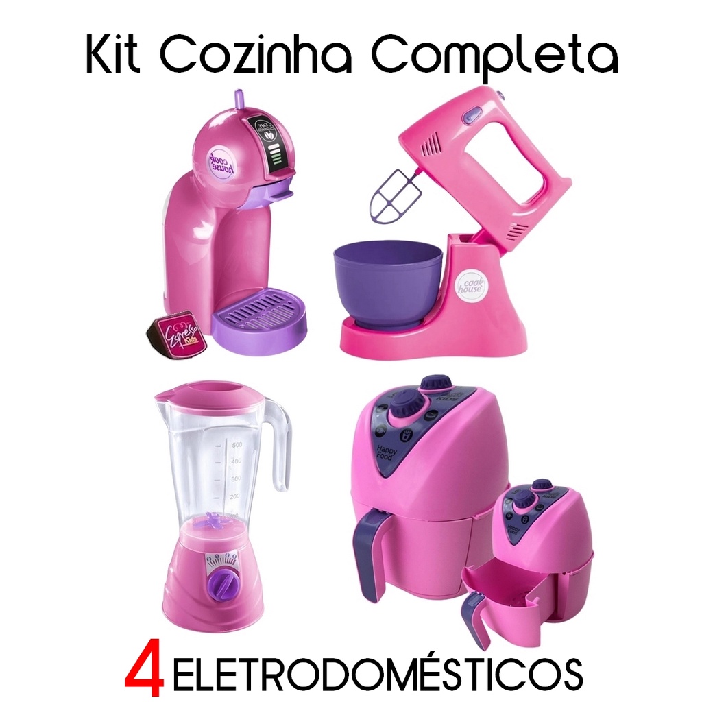 KIT COZINHA INFANTIL COMPLETO COM AIRFRYER, LIQUIDIFICADOR, BATEDEIRA E CAFETEIRA DE BRINQUEDO COMIDINHA