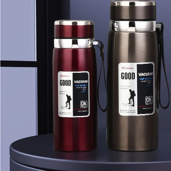 Garrafa 600ml/800ml/1000ml Inox Térmica Com Infusor Prata Dourada De Água Café Parede Dupla Com Alça-Para envio imediato