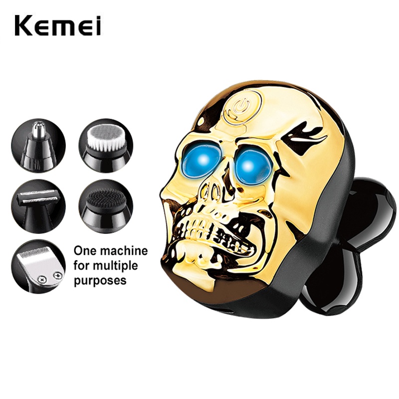 Kemei Homens Grooming Navalha Barbeador Elétrico Recarregável Kit De Barbear Com Aparador De Nariz Sideburns Trimmer Rosto Escova De Limpeza