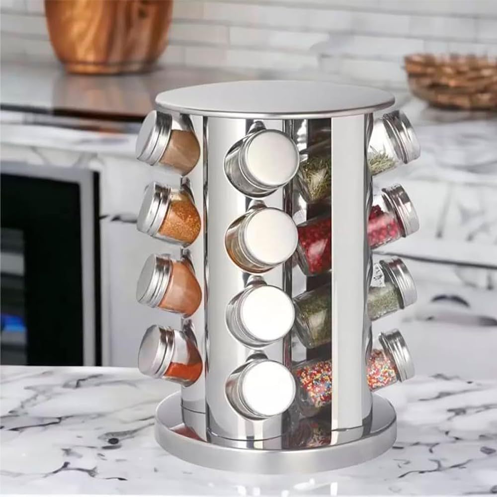 Porta Temperos Organizador Giratório Inox De Cozinha 16 Potes De Vidro Condimentos Prata