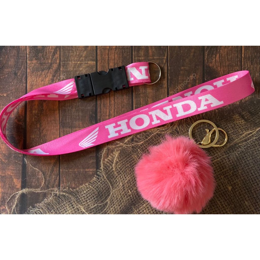 Chaveiro Cordão Com Engate Honda Motos Rosa + Pom Pom Rosa