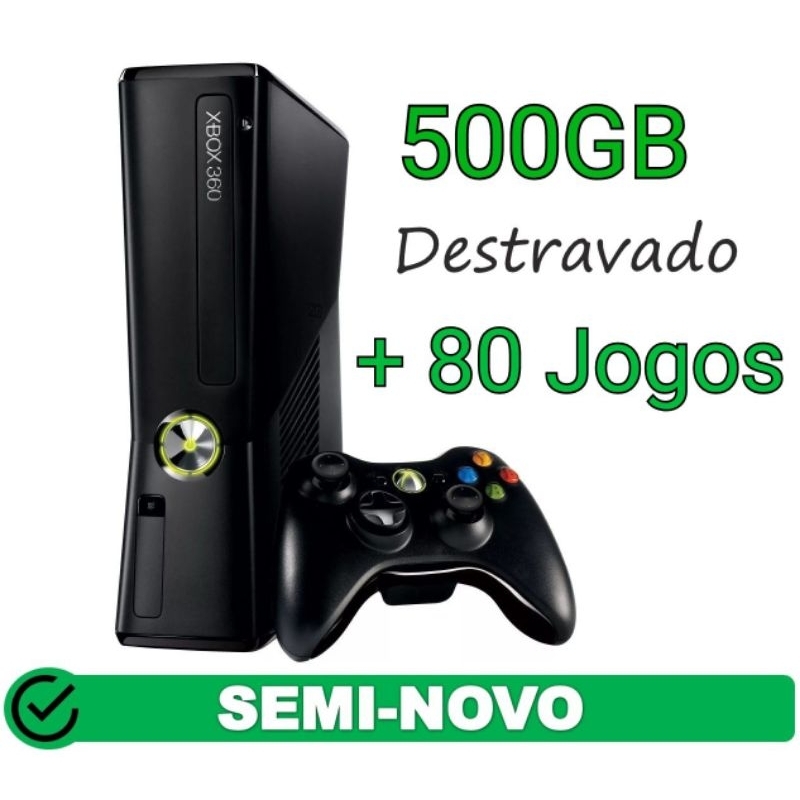 Xbox 360 Slim/Super Slim/Destrav Rgh-jtag + Hd 500gb + 80 Jogos + 2 Controles + Garantia