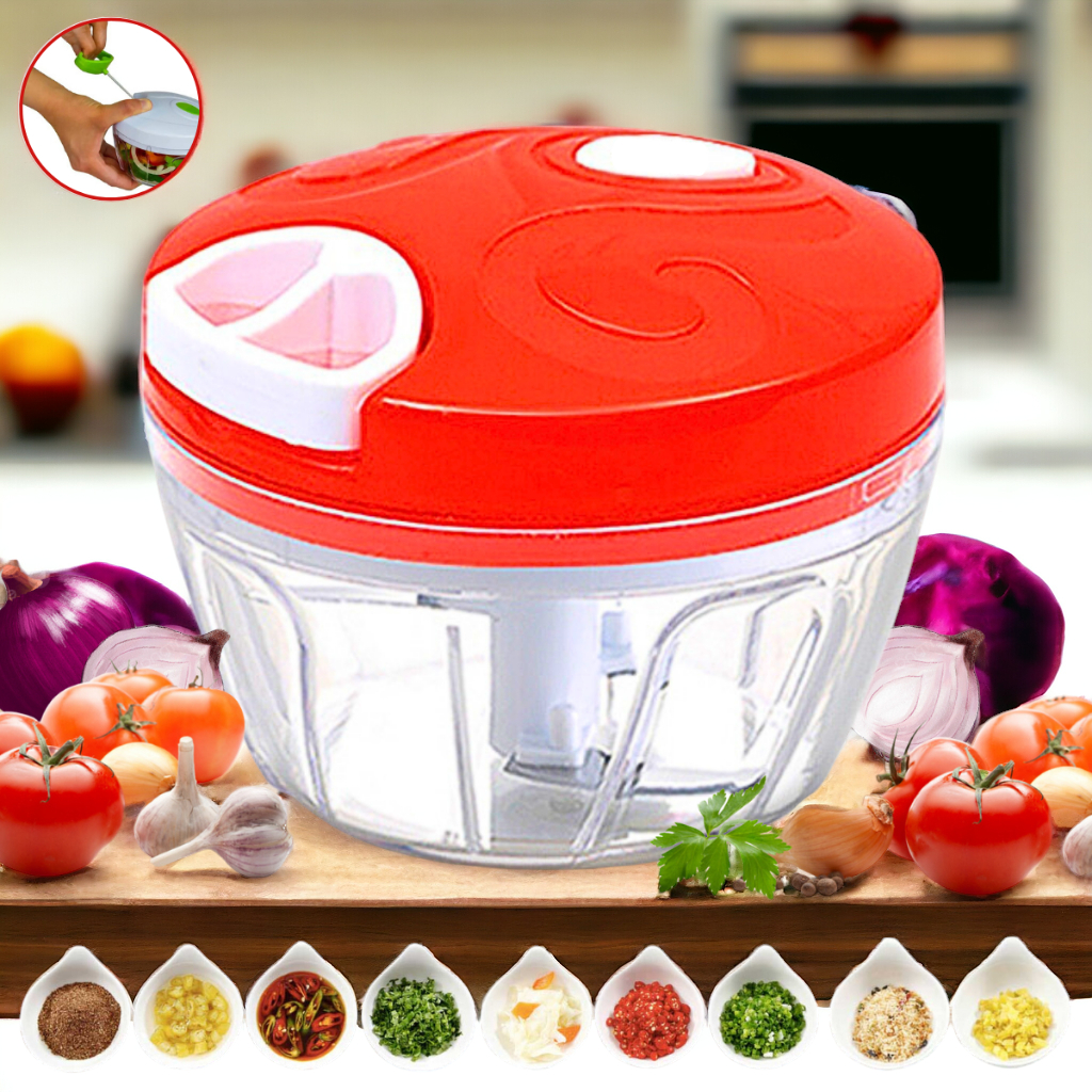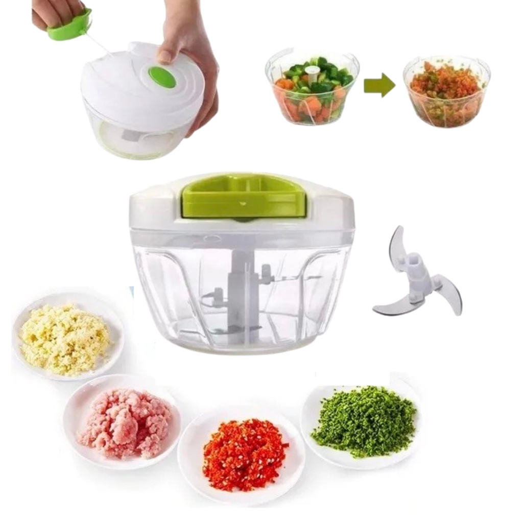 Processador Triturador Manual De Alimentos Plus 3 Lâminas Curvas Multiprocessador 500 M Corta Fácil carnes alho verduras legumes temperos vegetais utensílios de cozinha Lamina 2 Lâminas picador de alho achadinhos da shoppe casa baratinho