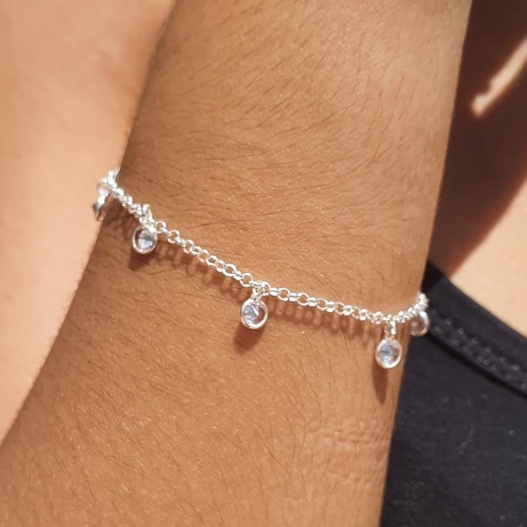 Pulseira Feminina zircônia strass a prata 925 antialérgico