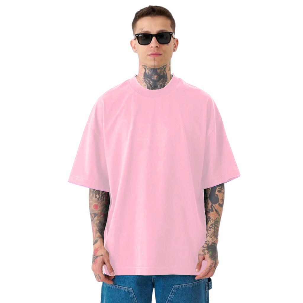 Camiseta Oversized Premium Masculisa Gola Grossa 100% Algodão Streetwear Larga Lisa Básica Rosa