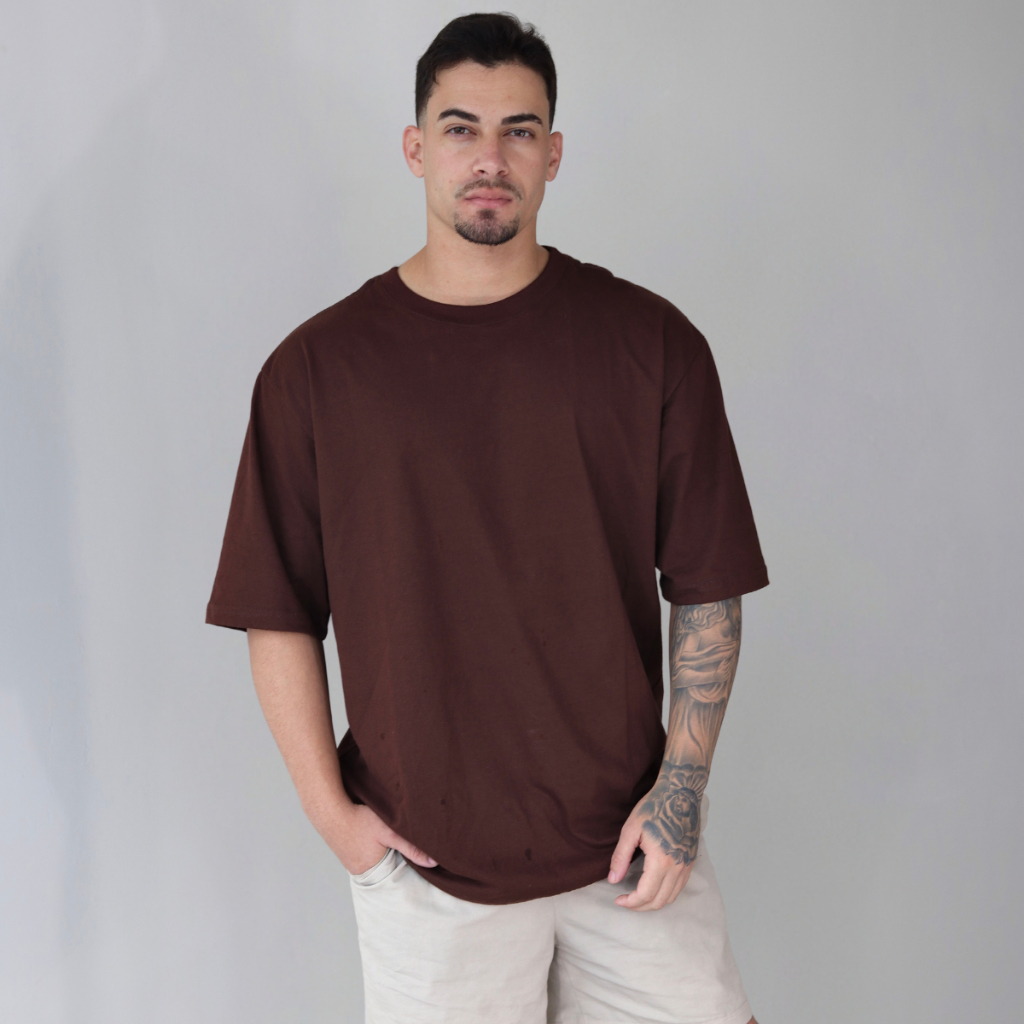 Camiseta Oversized Premium Masculisa Gola Grossa 100% Algodão Streetwear Larga Lisa Básica