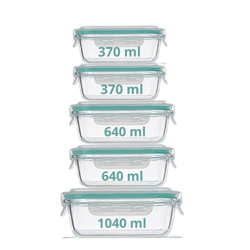 Kit Conjunto 5 Potes Herméticos Geladeira Vidro Marmita Tampa Click com Vedação Silicone Cor Borracha Verde