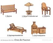 Kit Miniatura Área De Piscina Com 6 Peças Mdf Churrasqueira