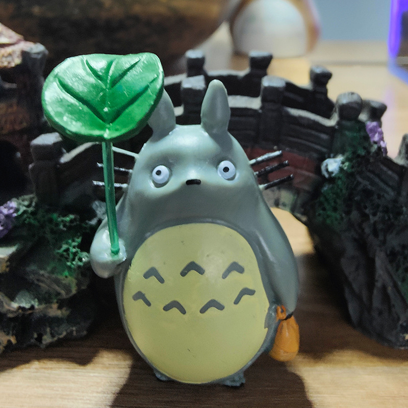 6,5cm Anime Studio Ghibli Totoro Lotus Leaf Q Versão Resina Figuras De Ação Hayao Miyazaki Bolo Miniatura Decoração Do Jardim Das Bonecas