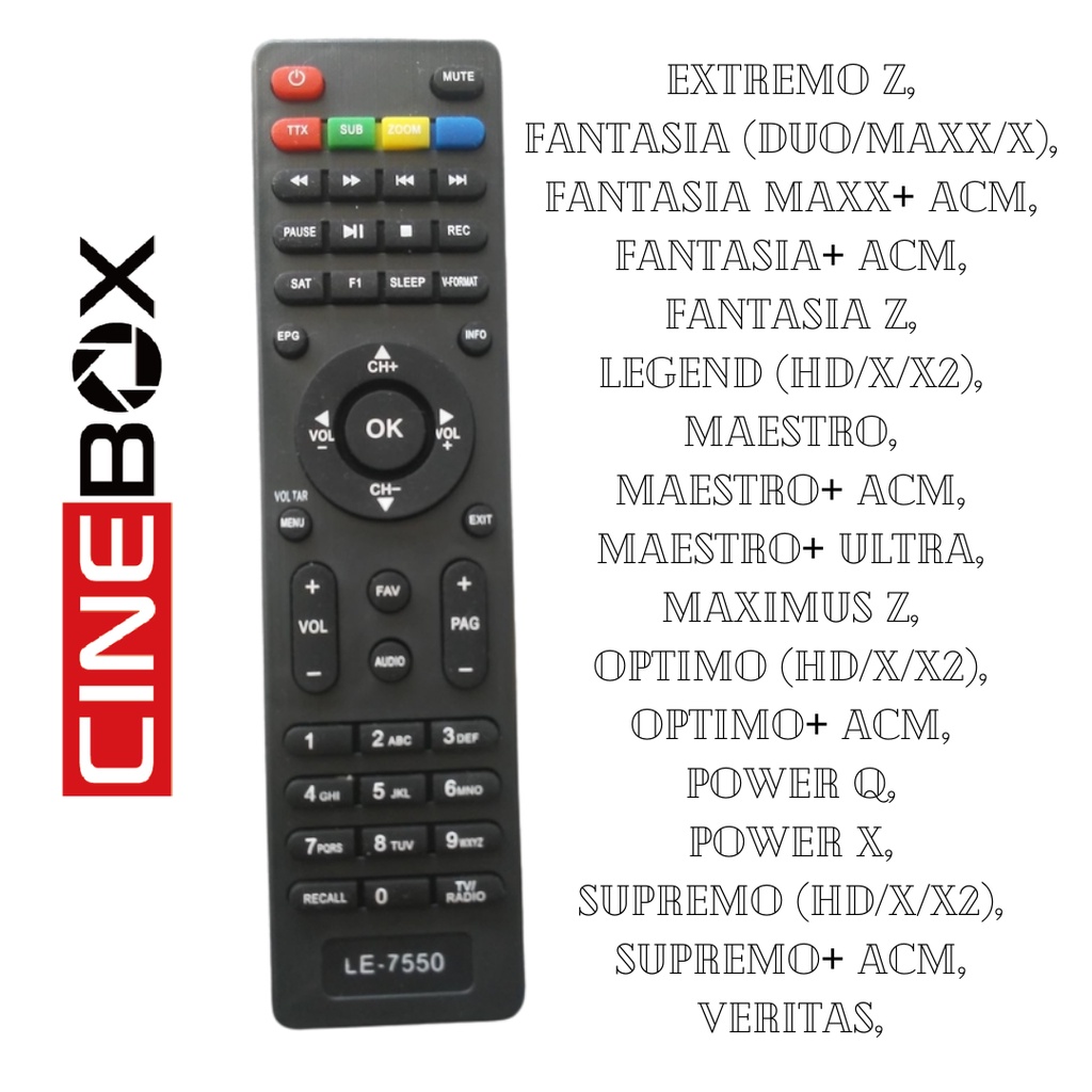 Controle Cinebox Fantasia / Supremo / Linha X, Z, S, plus 7550/7500