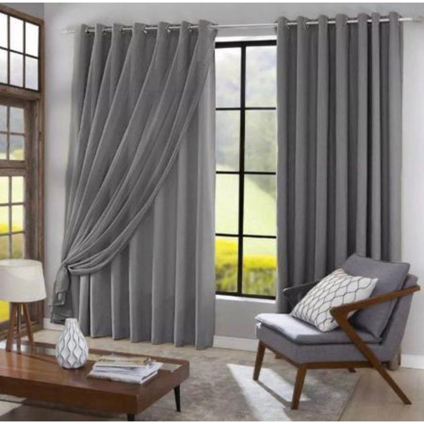 Cortina Blecaute Blackout c/ Voil Corta luz 100% PVC 280x260cm Com Ilhós Para Varão Quarto Sala Escritório - Envio Imediato